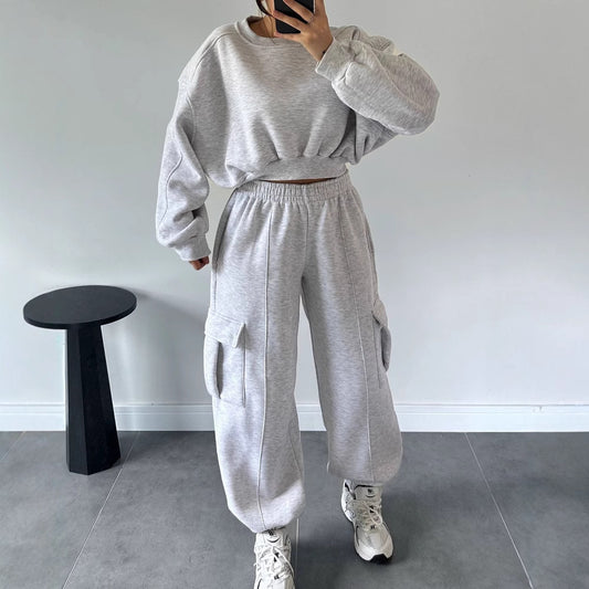Damen Bequemer Freizeitanzug mit lässigem Schnitt und praktischen Taschen Merchesia