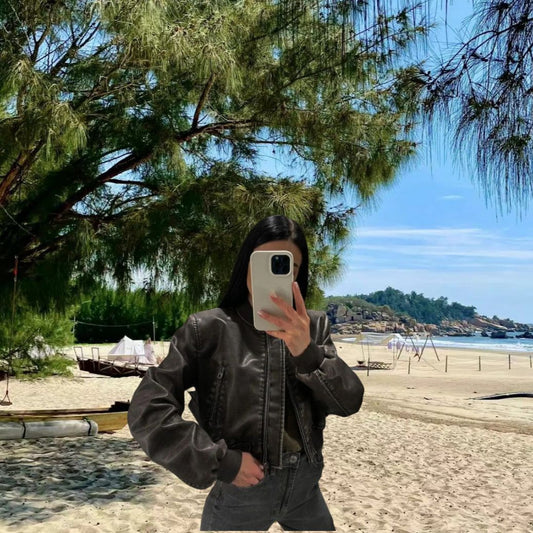 Damen Hochwertige Kunstlederjacke im figurbetonten Schnitt Merchesia